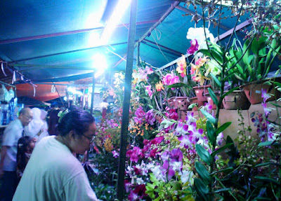 Orchids in various forms and sizes are displayed. They can either be local varieties or imported ones.